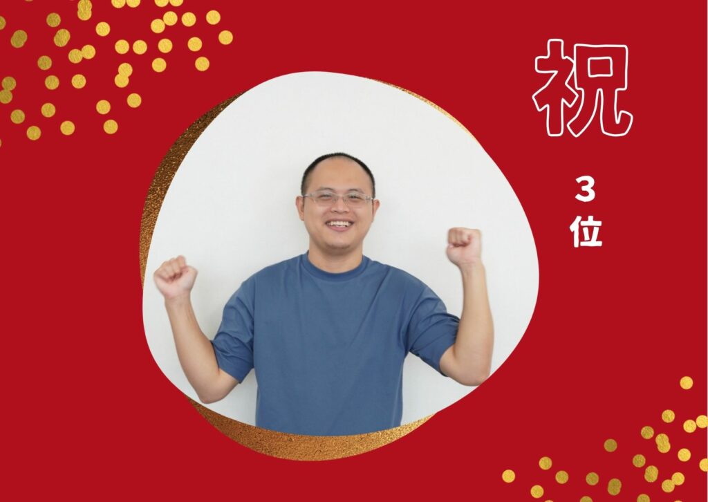 3位👑カク リョウウンさん(中国出身)「おおきに」
