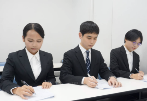 スーツで通学し、ビジネスマナーなどを集中的に学ぶ期間です。