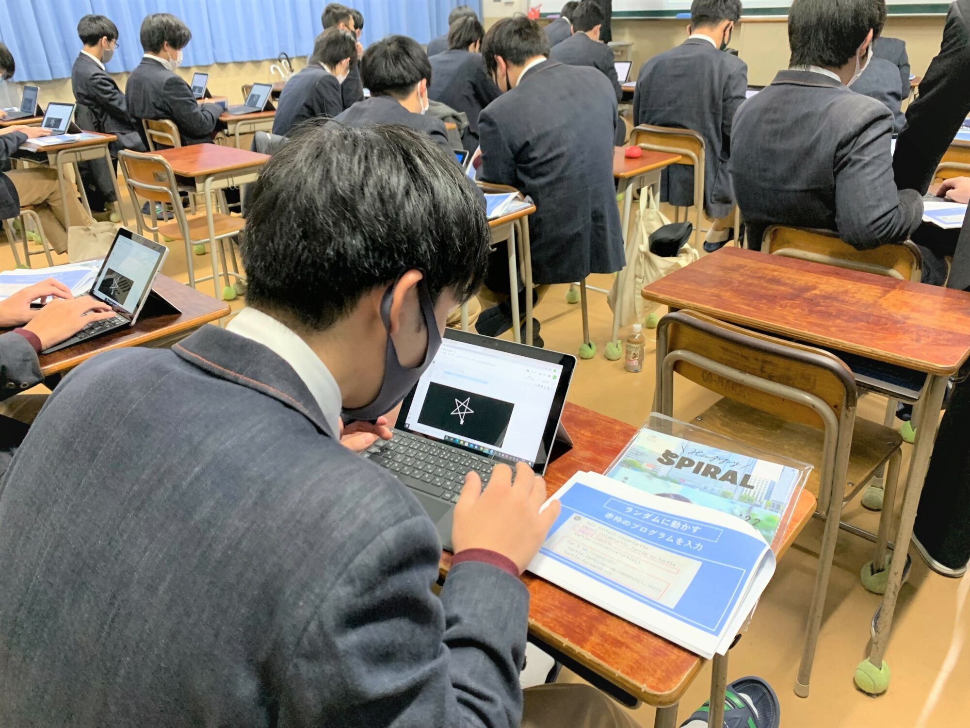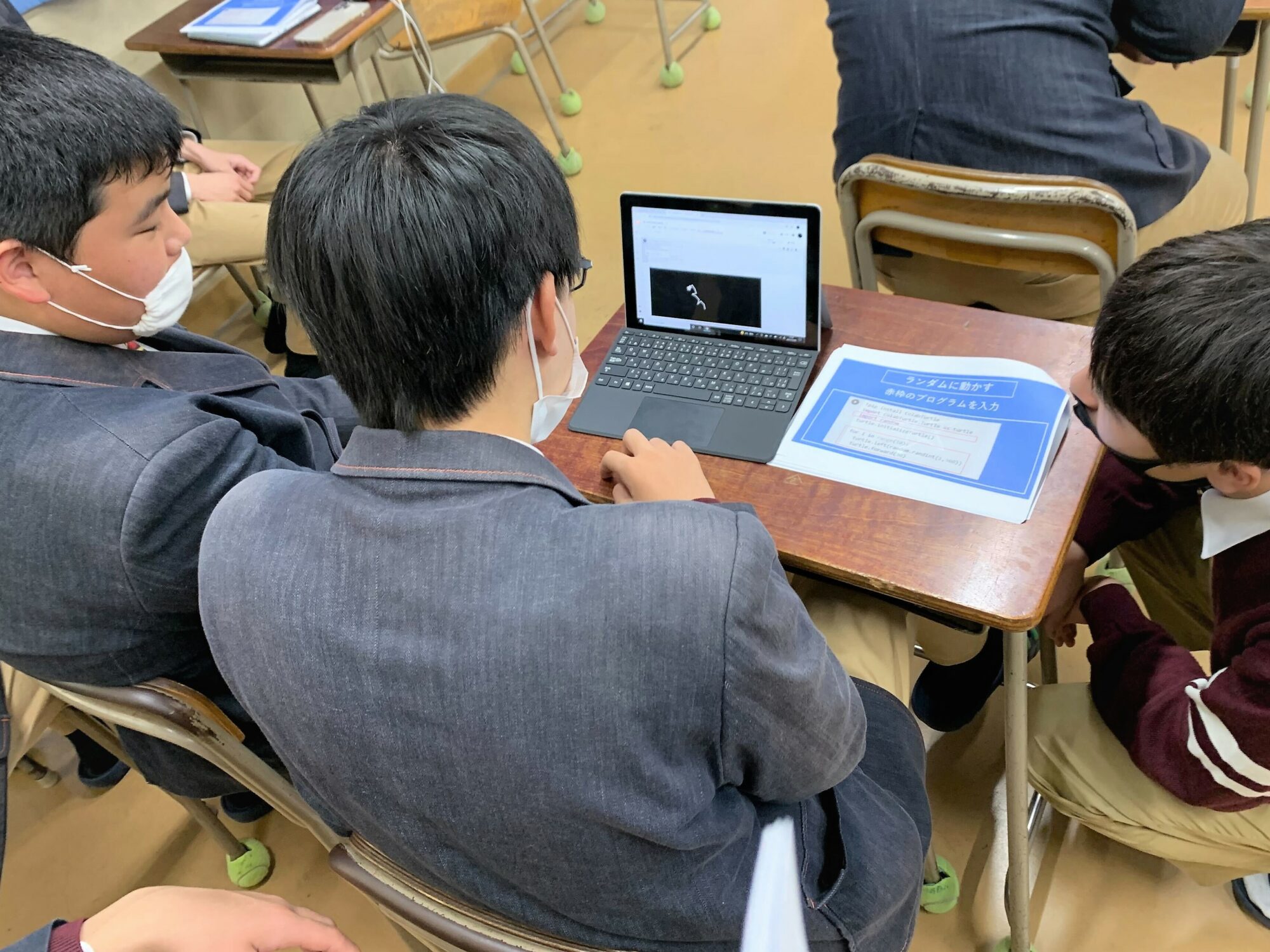 生徒の皆さんも最初は慣れない手つきで文字を打ち込んでいましたが、簡単なプログラミングを何度かやってみる中で指示通りにPCが動作することに興味をもってくれたようで、自分でアレンジを加えて動かしてみるなどして熱心に取り組んでくださいました✨