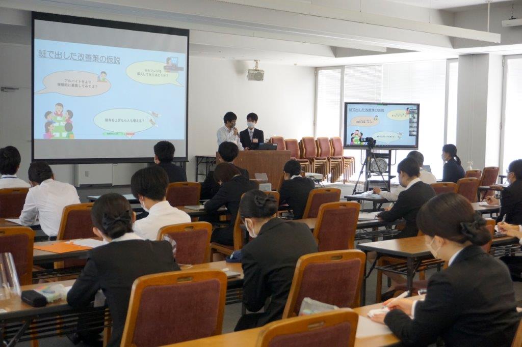 講義やグループでの意見交換をもとに、働くうえでの課題を調べ、提案を加えた資料を作成し、グループごとにプレゼンテーションを行いました💁💁♂️