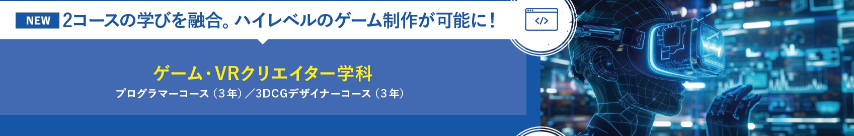 2026年度生募集の学科・コース ▶ 2027年度生を募集する学科・コース ゲーム・VRクリエイター学科2コース ▶ RENEW
